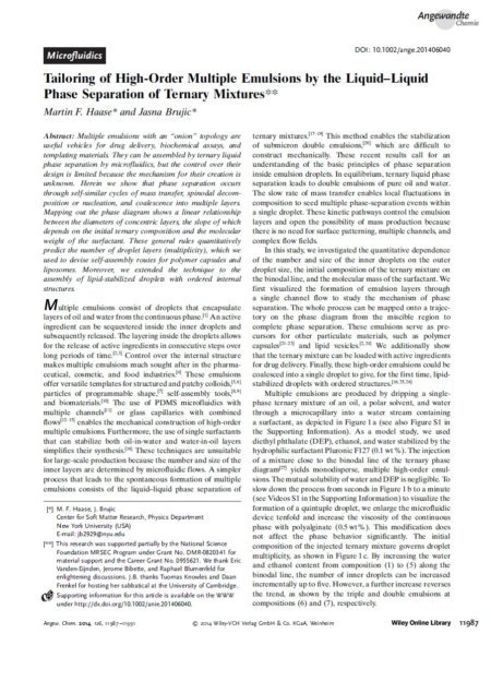 These four droplets consist mixtures of oil, alcohol and water. Astonishingly, with time the oil and water form multiple shells composed of alternating oil/water layers by phase separation.